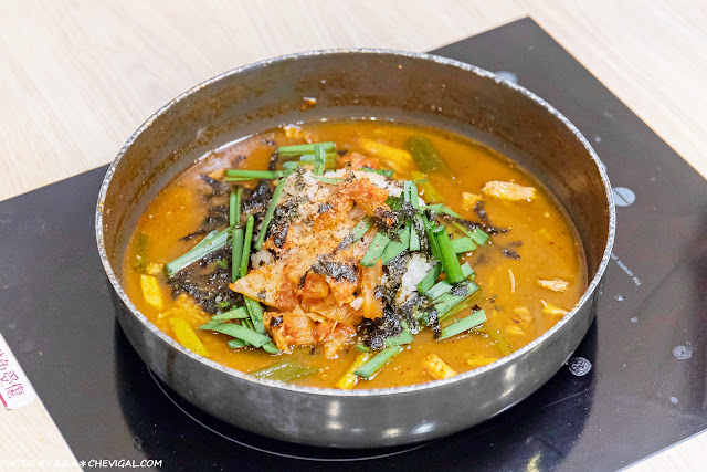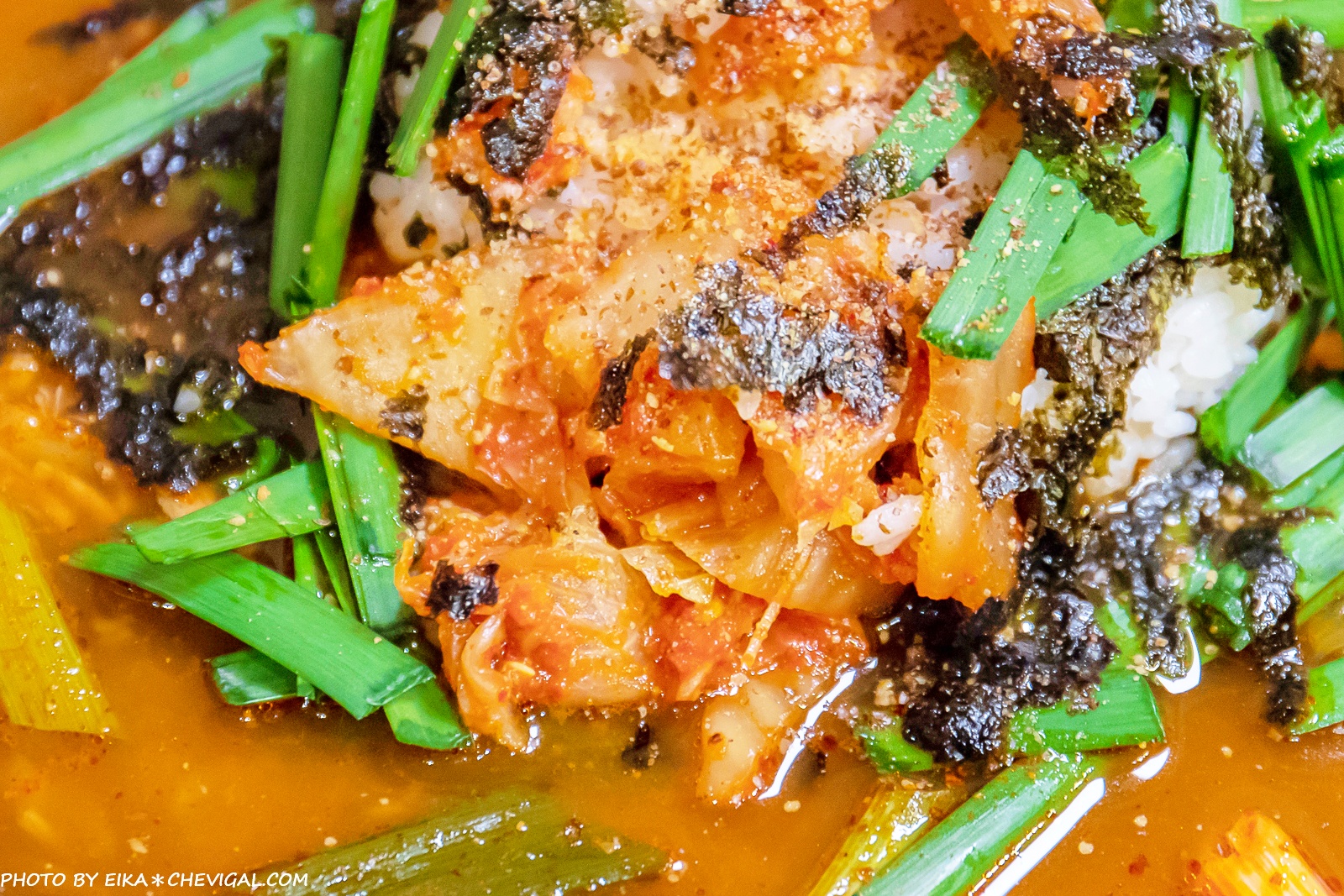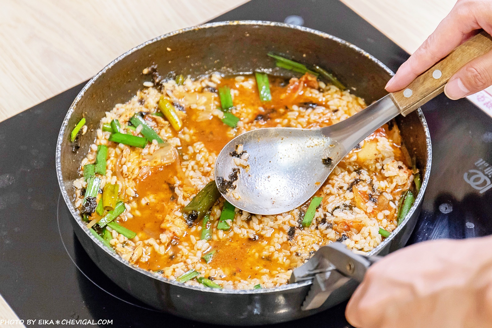 店家會依據人數幫你們加入白飯,另外再加入泡菜、蔥段、海苔與芝麻葉粉一同拌炒,等到湯汁最後全部收乾就可以享用囉!