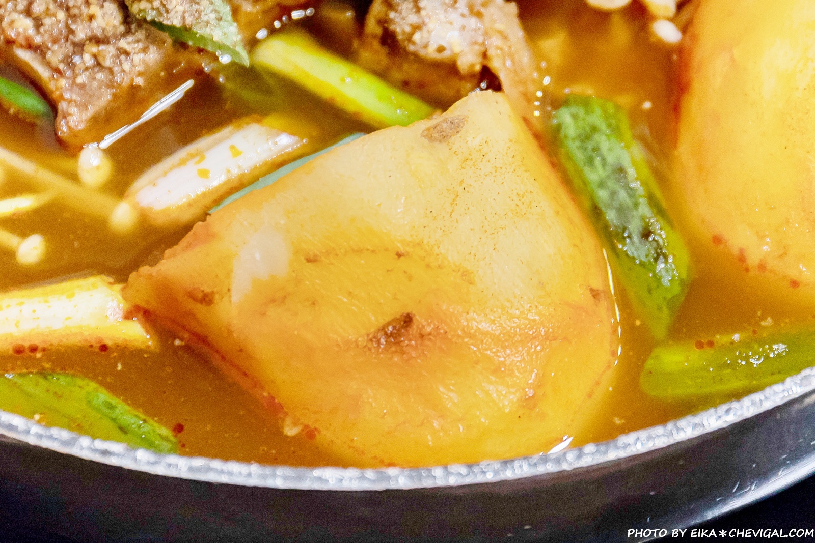 雖然馬鈴薯豬骨湯相較於其他在台的韓式料理來說並不是那麼大眾化,但是濃郁的湯頭風味熱熱地喝起來真的好舒服,豬骨肉質更是讓人印象深刻!