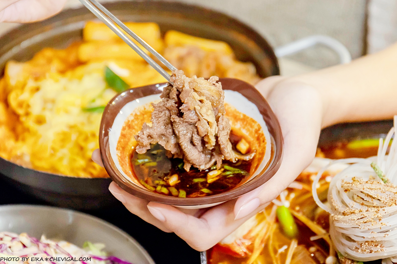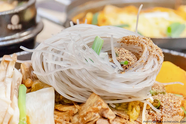 裡面除了韓國冬粉之外,牛肉份量也給得不少,肉質事先有經過醃漬,其實吃起來和銅盤烤肉幾乎沒有什麼差別;不過點單人鍋的好處,就是上桌馬上就能享用,不用再慢慢加熱啦!