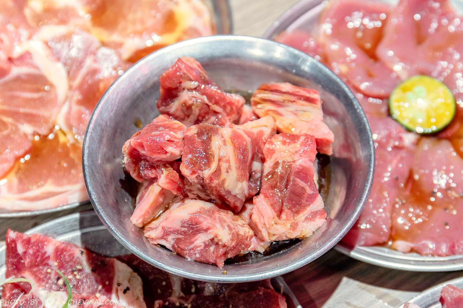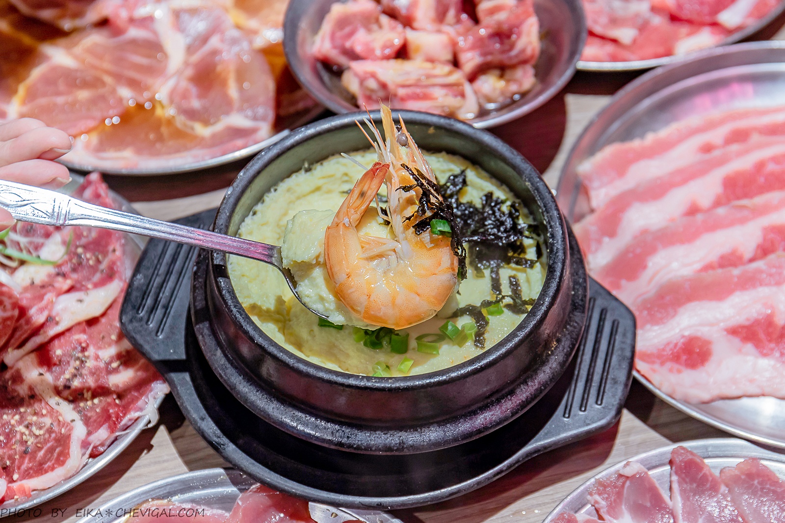 對了,在烤五花肉的過程當中也會逼出不少油脂,所以店家也會提醒我們可以先烤五花肉,這樣後續的肉品都能運用前面五花肉的油脂,減少烤盤產生沾黏的機率。