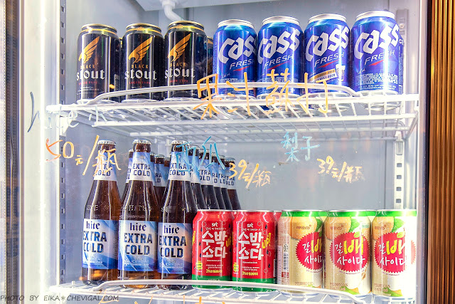 飲品的部份除了開水與氣泡飲料可以無限暢飲,冰箱裡還有各式韓國飲品、果汁蘇打、Hite啤酒與cass啤酒,而且啤酒類的飲品都是買一送一!(開車不喝酒,喝酒不開車)