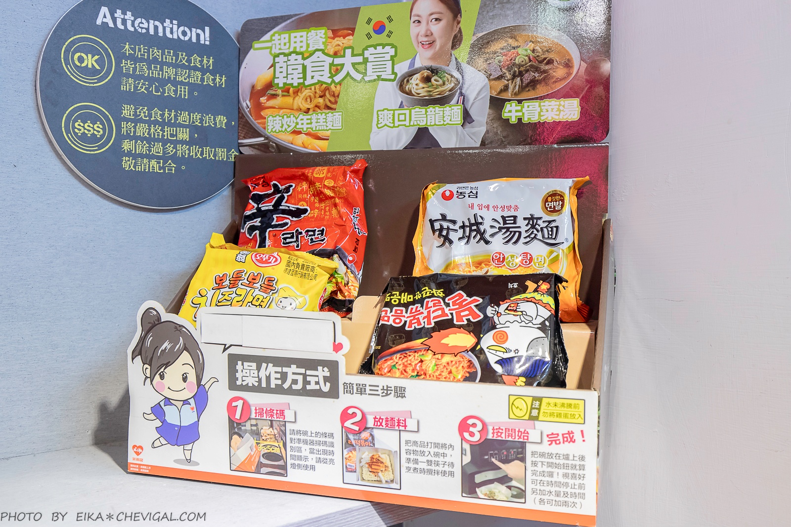 再來就是我們哈很久的泡麵了!這裡有火辣雞肉拉麵、超濃起司拉麵、辛拉麵與安城拉麵四款拉麵可以選擇,雖然都有辣度,不過辣度相差蠻多的,記得要量力而為啊XD