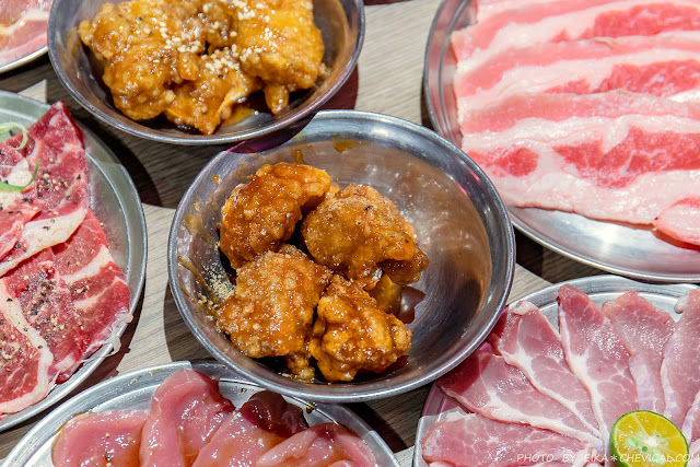 店內最後方還有自助吧,裡面有多款韓式小菜與肉品可以自行取用,牆上還有解說烤肉的步驟與醬料的使用方式,即使你們是烤肉新手也不用擔心!