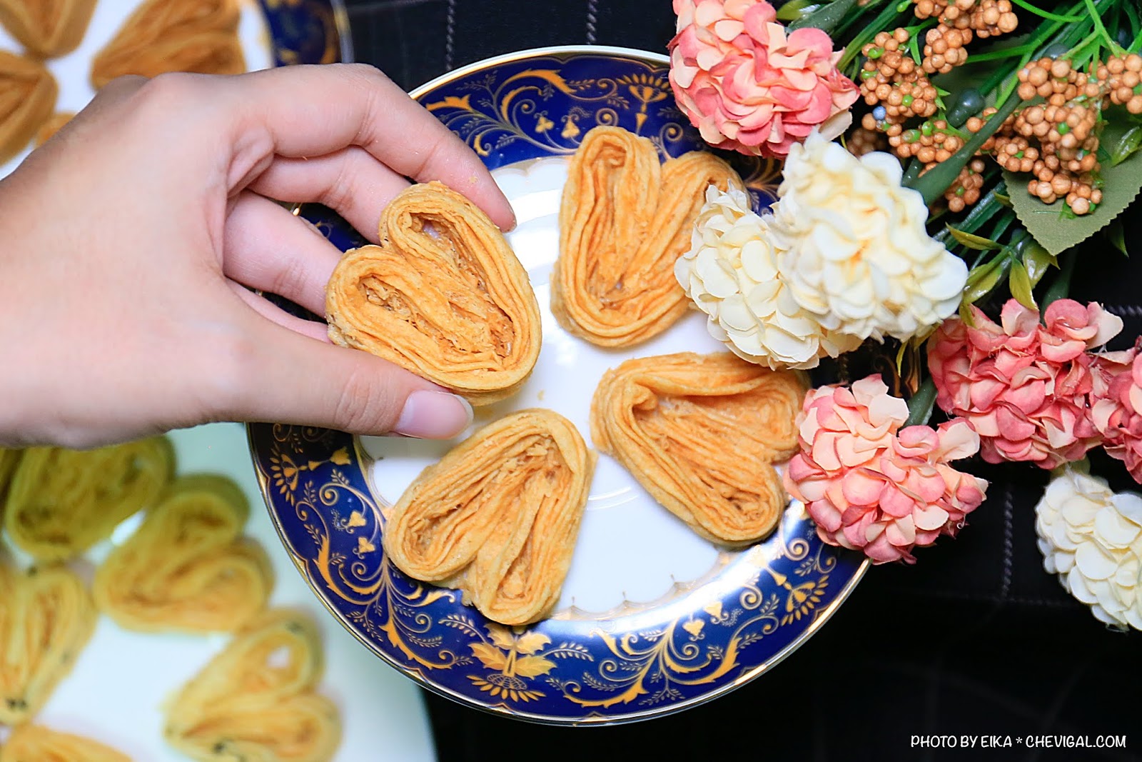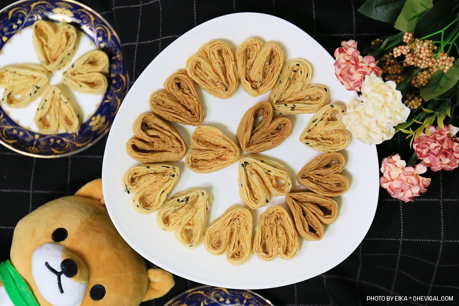 芝麻口味也是不少朋友在選購蛋捲的首選,不過看到愛心形狀的蛋捲,真的很難和我們一般長條狀的蛋捲聯想在一起,極其酥脆的口感其實常常也會讓人不小心以為在吃蝴蝶酥哈~