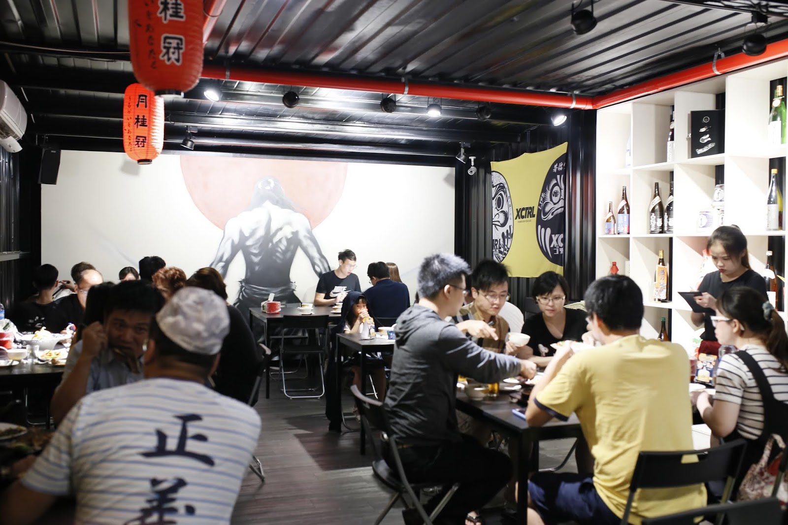 以黑色貨櫃材質為主的室內空間,低調質感當中不經意地流露出濃濃的日式情懷,尤其是店內後方一整面的武士形象牆面,據說還是店家特地請人繪製,更顯陽剛霸氣。