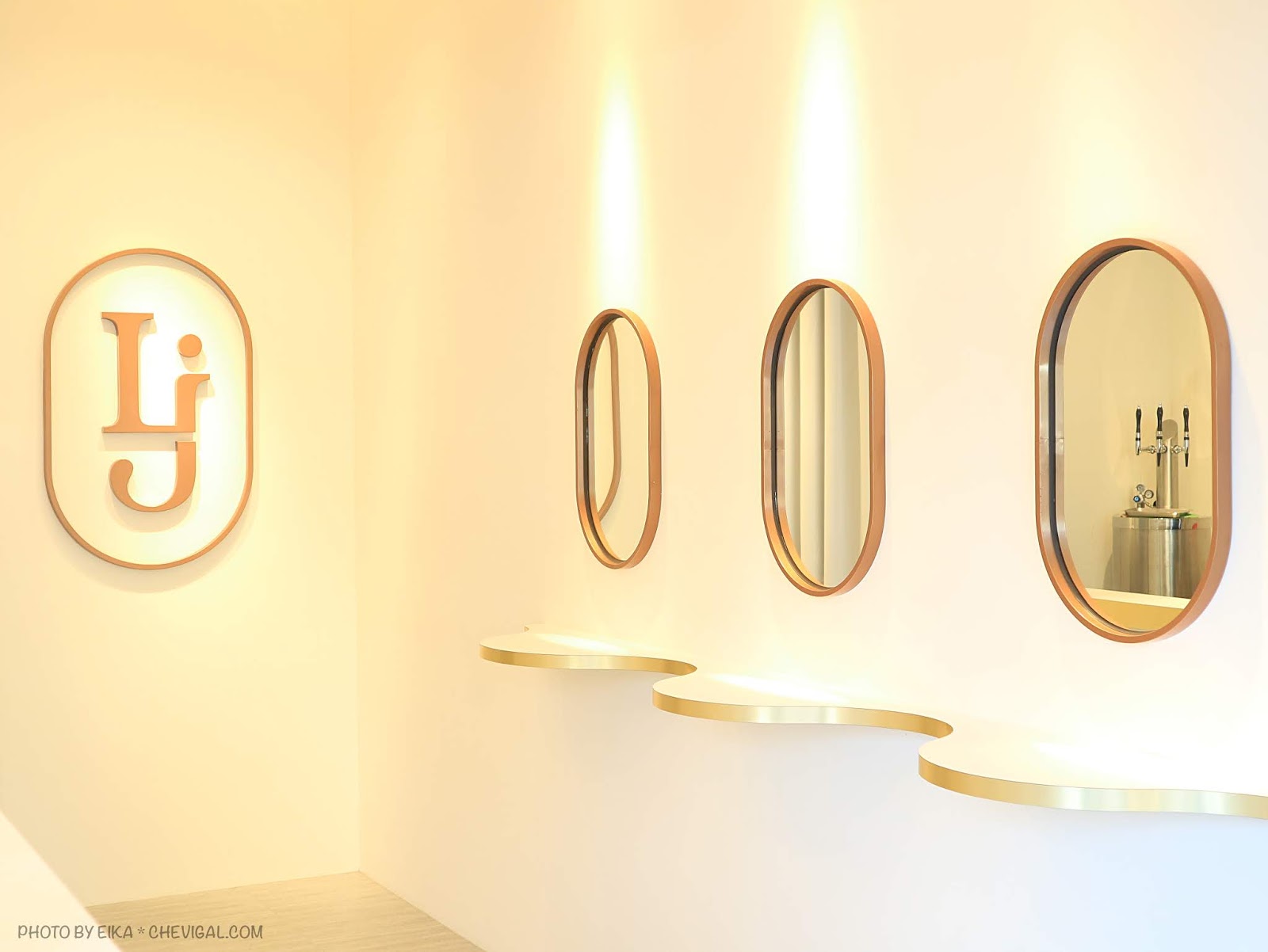 店內另一邊的空間真的超美!流線型的吧台還能站著小憩喝杯飲料,金黃色的色調特別優雅貴氣,就像是法式的化妝台,不過要調整手機的白平衡倒是有點傷腦筋,哈哈~