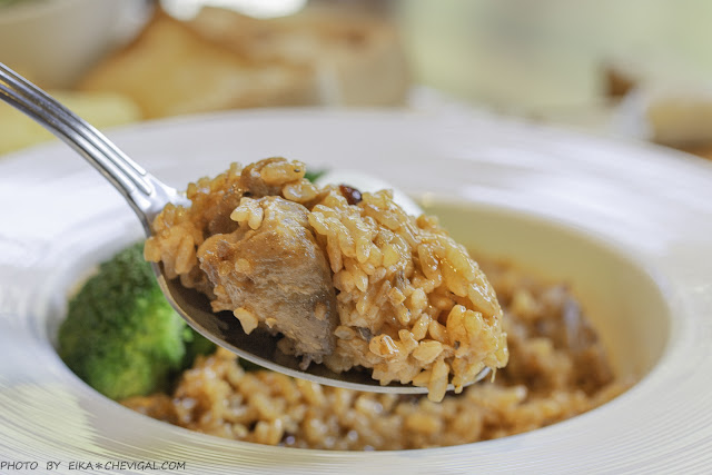 薑碎雞胸燉飯$160元,這道含有雞胸肉、青花菜與水煮蛋,雖然有加入番茄醬,整體看起來也是紅醬的色澤,但是味道真的超出我們的想像!