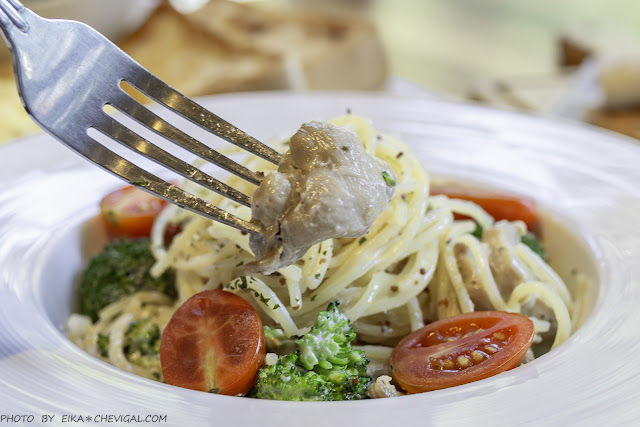 這道法式芥末籽雞胸肉義麵$160元,與後面要介紹的薑碎雞胸燉飯,都是這次最新的秋季企劃所推出的相關系列餐點;看到兩道餐點都有搭配雞胸肉,果然和健身的主題有所呼應呢~