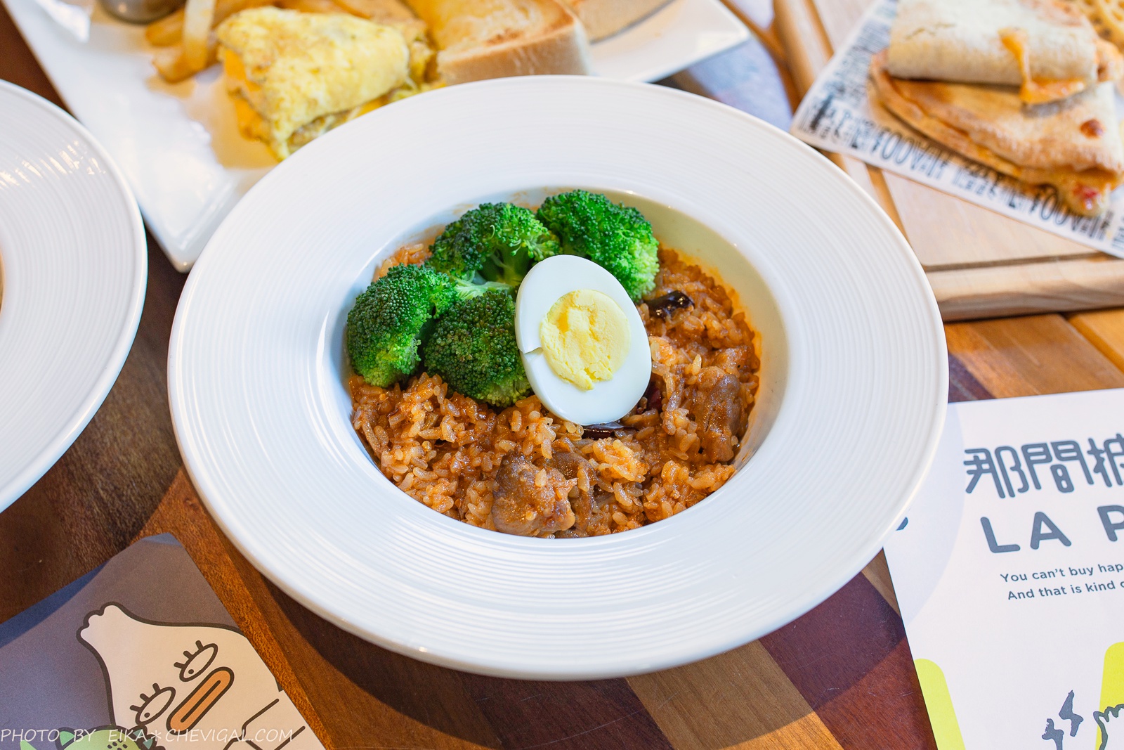 薑碎雞胸燉飯$160元,這道含有雞胸肉、青花菜與水煮蛋,雖然有加入番茄醬,整體看起來也是紅醬的色澤,但是味道真的超出我們的想像!