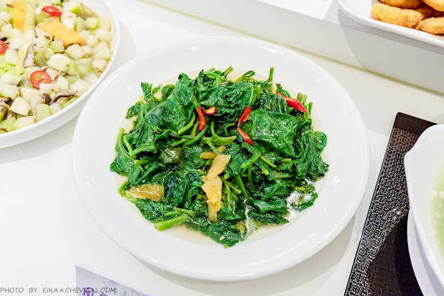 紅土地瓜、栗子地瓜、金沙南瓜、黃金玉米筍與酥炸白玉蘿蔔,各項時蔬的品質非常好,甚至是選用與許多在地小農合作的農產,並不會因為是吃到飽而讓品質大打折扣。