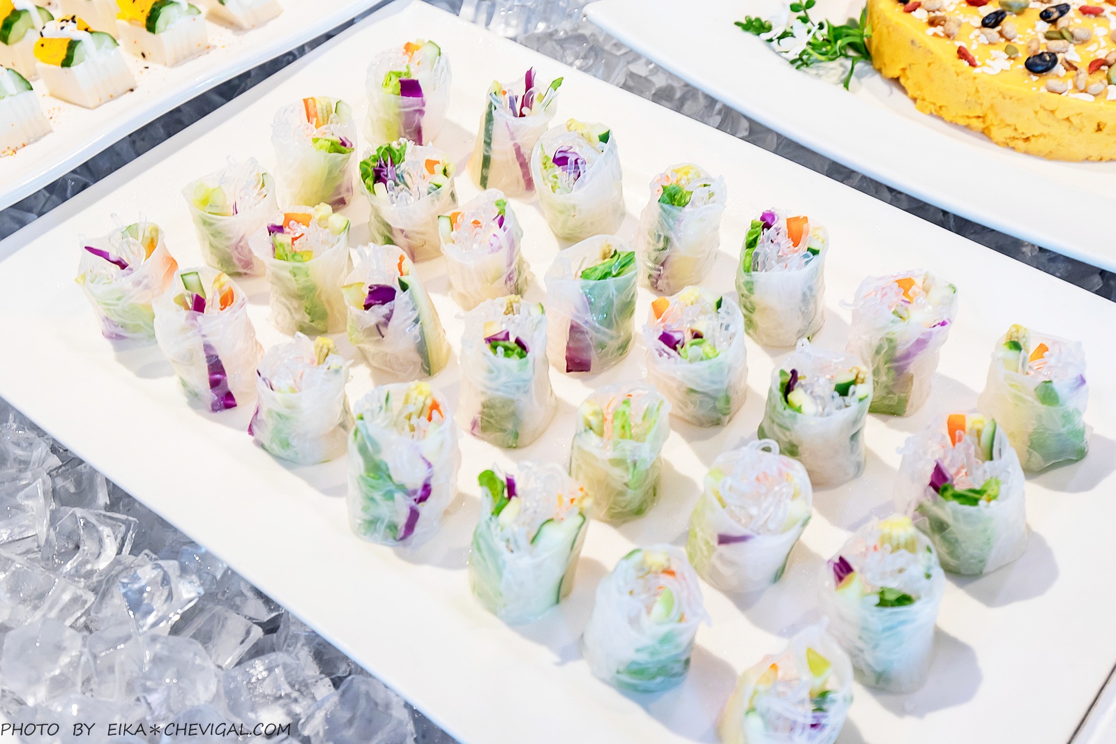 豆腐佐優格/芥末籽黃瓜捲/可口三色蛋,這三道的色澤與口味都很適合紓解夏日的燠熱,尤其是豆腐佐優格的口感清爽滑嫩,果香入口即化,相信小朋友們應該也會很愛!