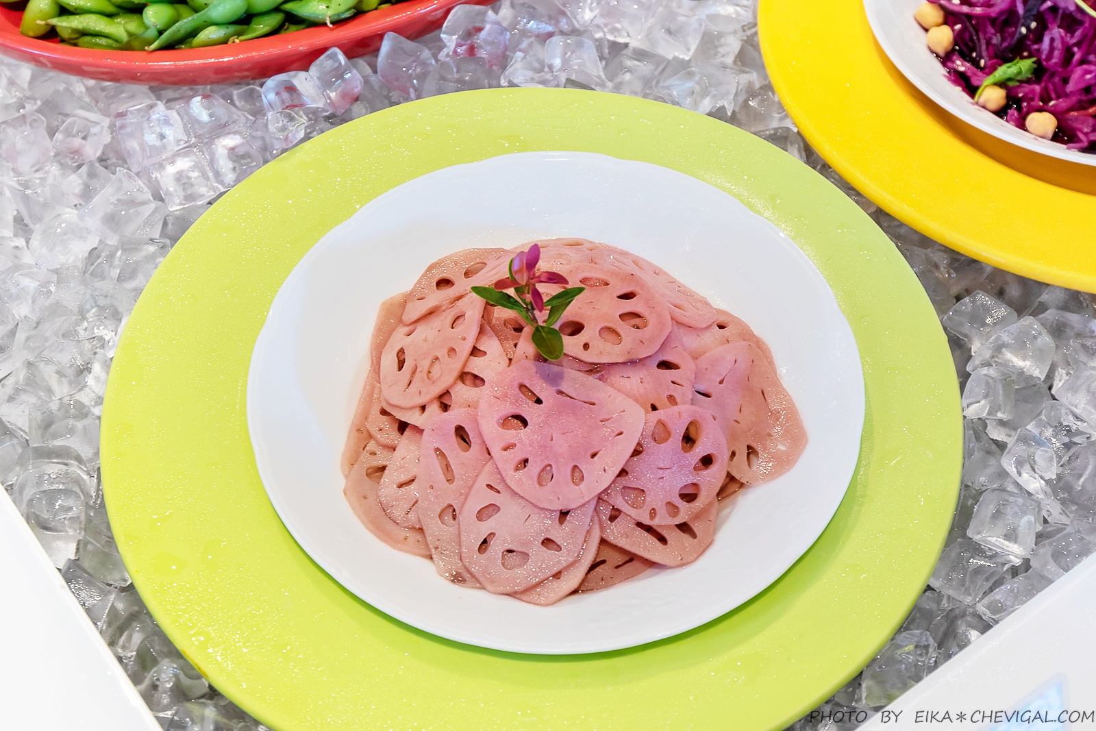 紅酒漬蓮藕,清新脆口的蓮藕經過醃漬,有著紅酒淡淡的粉嫩色澤;也讓原本風味較為單調的蓮藕多了幾分酒香,層次感還不賴。
