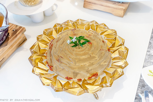 枸杞桂花凍,有著晶瑩剔透的色澤,整顆遠看就像是美麗的珠寶!吃起來也相當爽口,還能順便清新口氣。