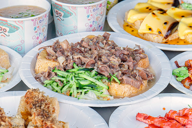 在等待餐點的期間,老闆請我們試吃了一份豆腐乳臭豆腐,剛炸好的臭豆腐口感外酥內軟,而且個頭還不小,豆腐乳的濃郁香氣搭配清爽的小黃瓜絲,吃起來爽口不油膩,還挺有飽嘴感的。