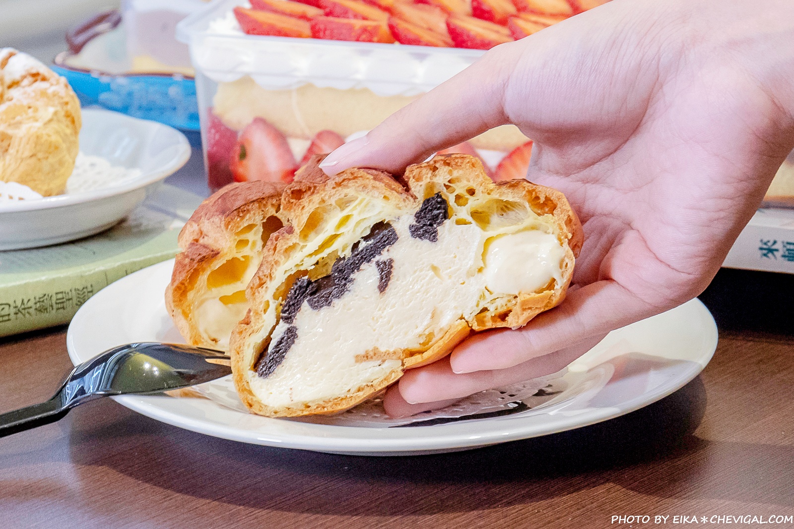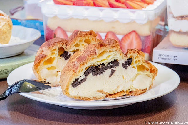 OREO藏心炸彈泡芙$70元,香濃又滑順的卡士達醬非常討喜,而且內餡同樣也給得特別大方,稍微一擠壓感覺就快要爆炸啦!卡士達醬裡面更是加入了OREO脆片,品嚐當下不時就會在口腔中瀰漫著巧克力的香甜風味,螞蟻控應該也會蠻愛的唷~