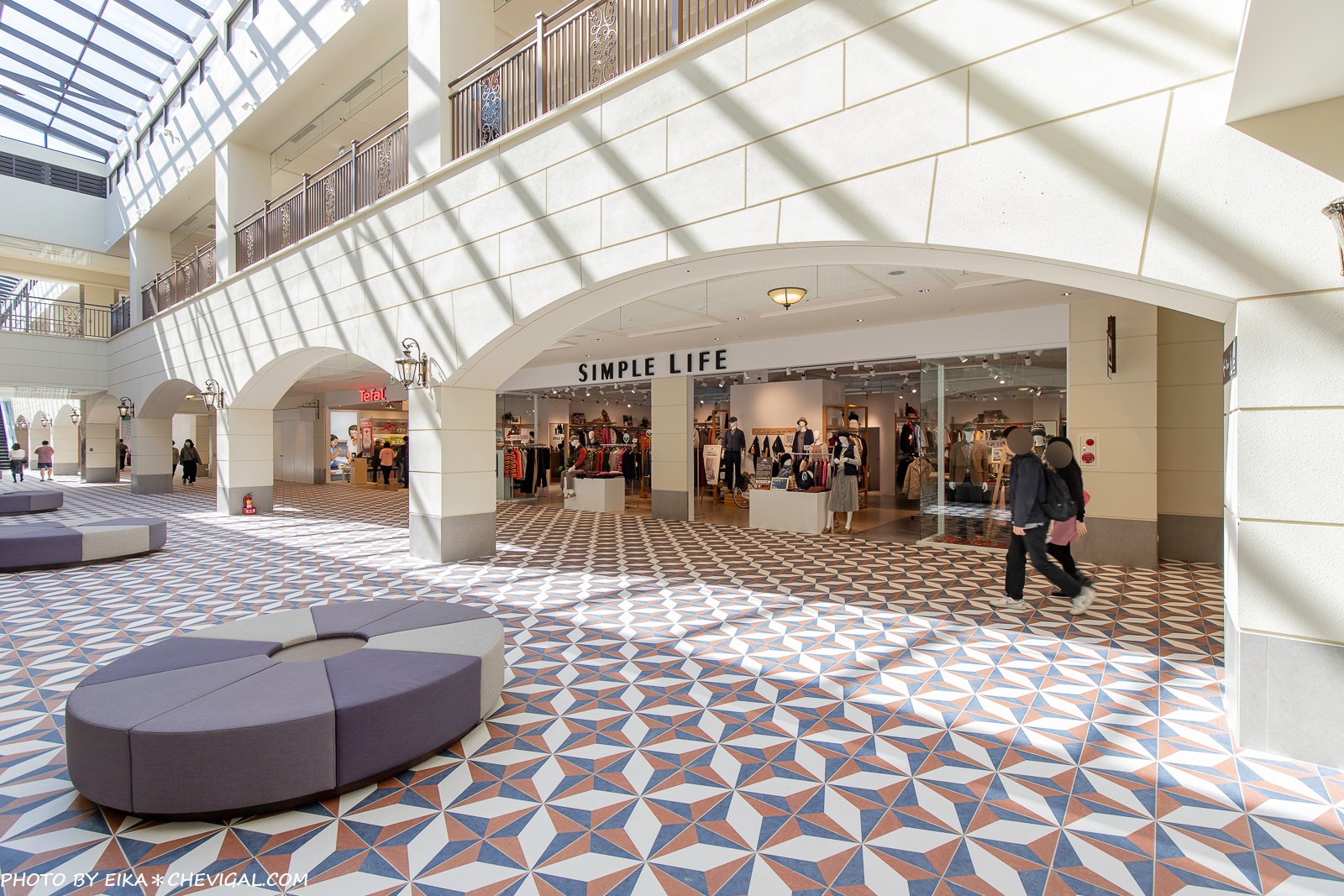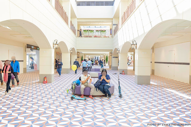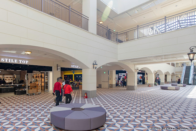 Outlet Mall二期的風格相當浪漫,除了具有挑高的空間設計,甚至在C棟還有舖設美麗的花紋地磚,看起來更添華麗的異國氛圍,而且隨處都有座椅可以休息。