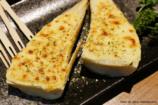 這道蒜味焗筍非常特別,雖然是以焗烤的方式料理,但是綠竹筍的鮮味十分明顯,吃來有著筍類特有的微甜與微苦,再搭配上焗烤的鹹香與表面的蒜香,飽滿的風味遇上筍類的清爽,讓人一吃就愛上!