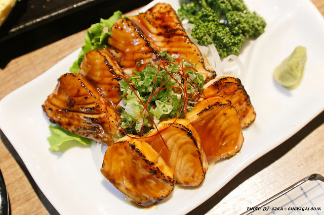 其實肉質吃得出來還蠻新鮮Q彈的,如果炙燒的時間可以再短一些,並在魚肉表面炙燒薄薄的一層,應該更能襯托出生魚片的鮮味,以及炙燒的焦香,這道菜色的表現稍嫌可惜。