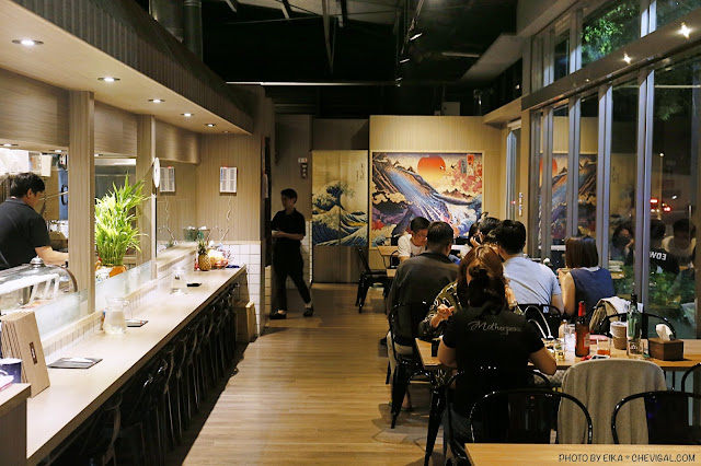 室內的座位多為六人座,若是家庭或是公司聚餐,習慣坐圓桌的朋友們可以選擇最後方的座位,搭配經典鮮明的浮世繪,整個日式風情流露無遺。