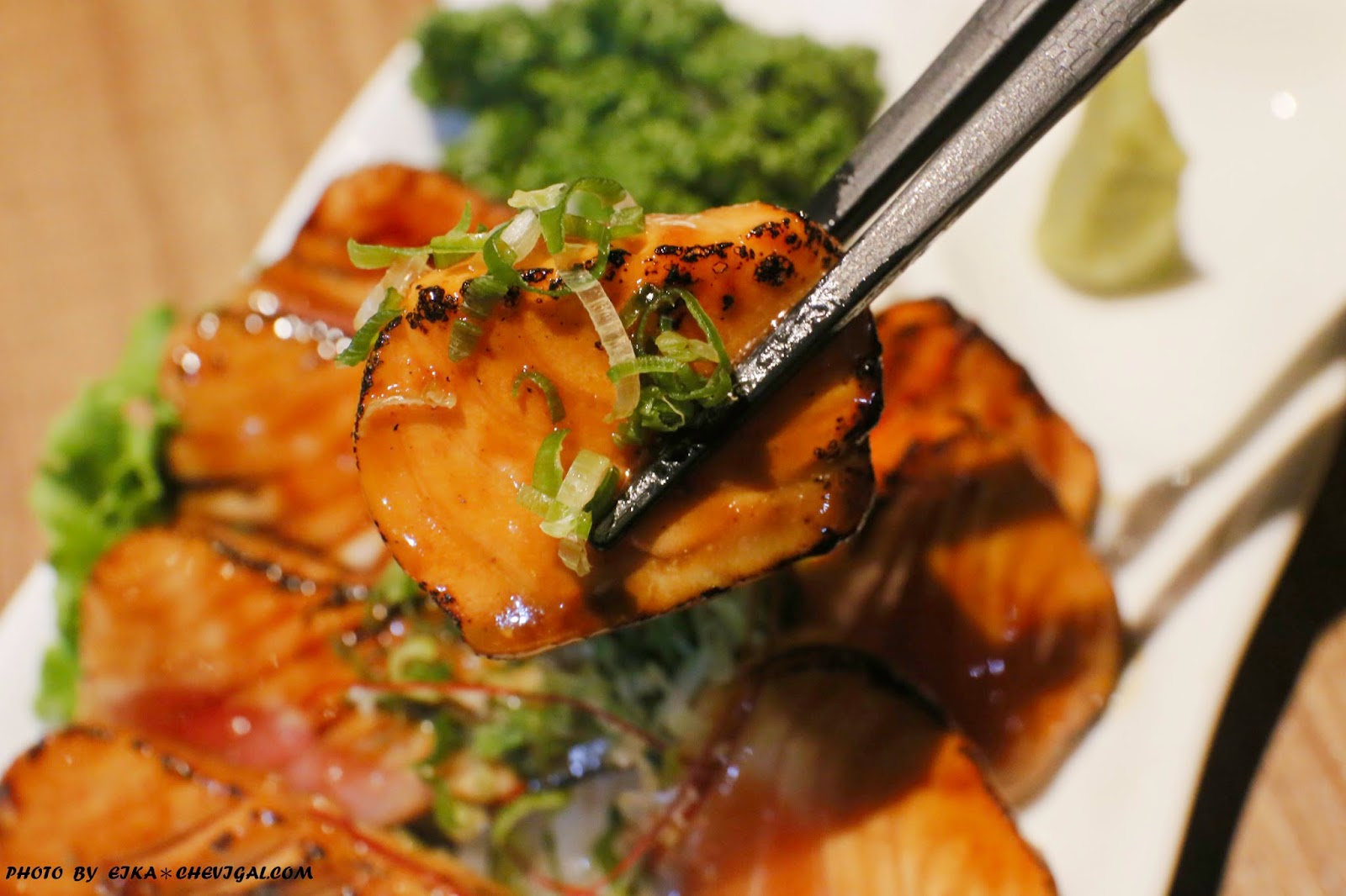 其實肉質吃得出來還蠻新鮮Q彈的,如果炙燒的時間可以再短一些,並在魚肉表面炙燒薄薄的一層,應該更能襯托出生魚片的鮮味,以及炙燒的焦香,這道菜色的表現稍嫌可惜。