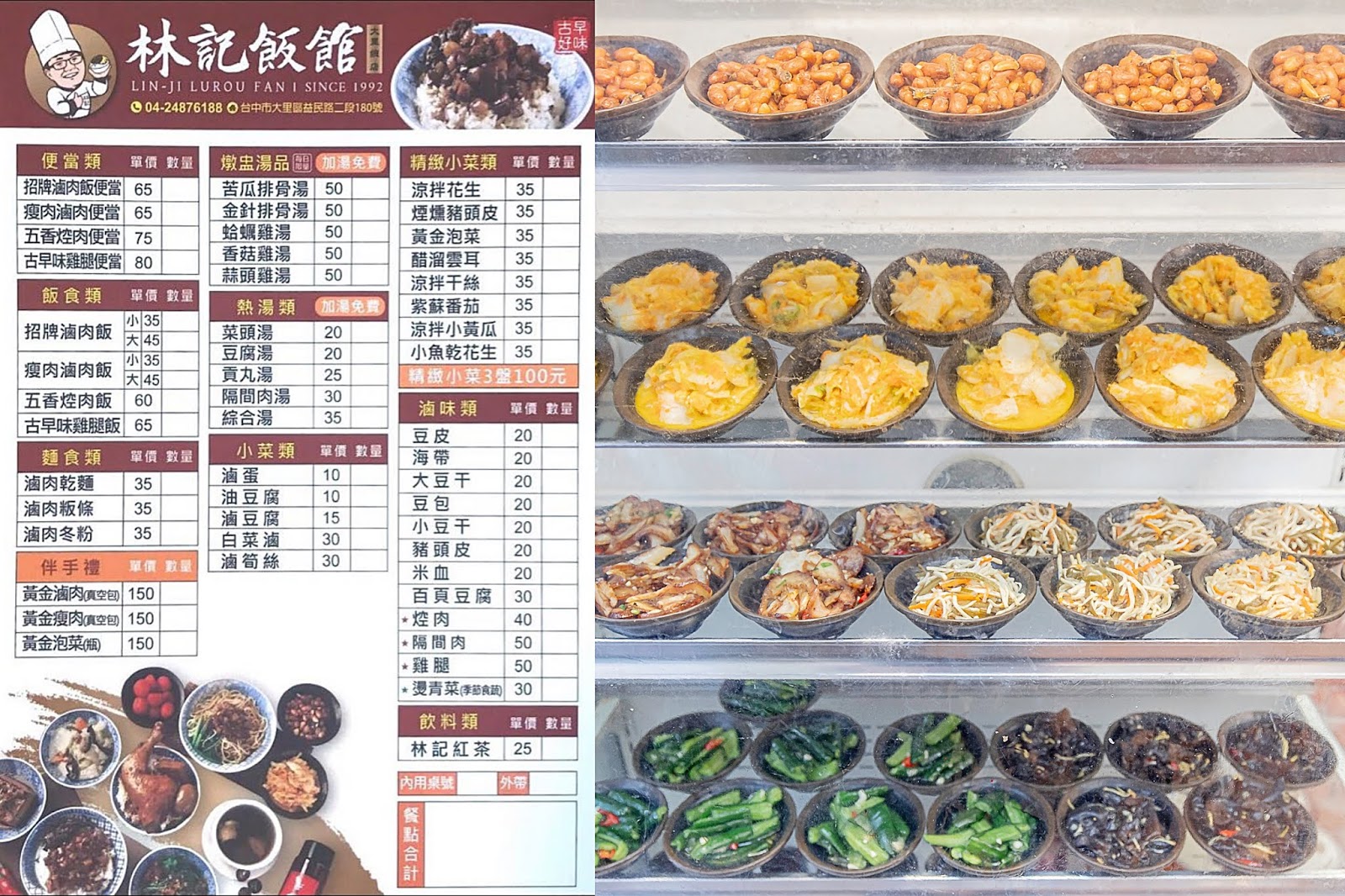 林記飯館位在大里益民路二段上,主打各式傳統飯麵與燉盅湯品,另外也有多種精緻小菜與滷味可以選擇,平實的價格讓人即使常常來吃也不心疼,更酷的是滷肉飯竟然還可以選擇肥瘦!