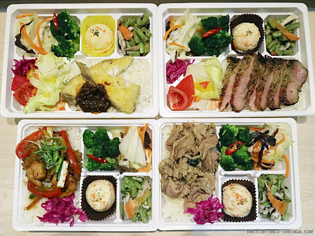 不同品項的盒裝尺寸與價位也稍有不同,不過配菜基本上都是相同的;豐盛繽紛的配色與食材組合,加上誠意十足的主菜份量,不管是自己享用、公司開會訂餐都很得體。