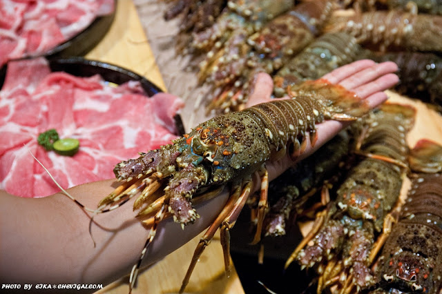 真的很誇張!這裡選用的龍蝦是中東龍蝦,也就是我們常聽到的青龍蝦,每隻龍蝦的長度幾乎和半截手臂一樣長~而且個頭碩大、肥美飽滿,看得連平常不是海鮮控的友人都蠢蠢欲動啦!
