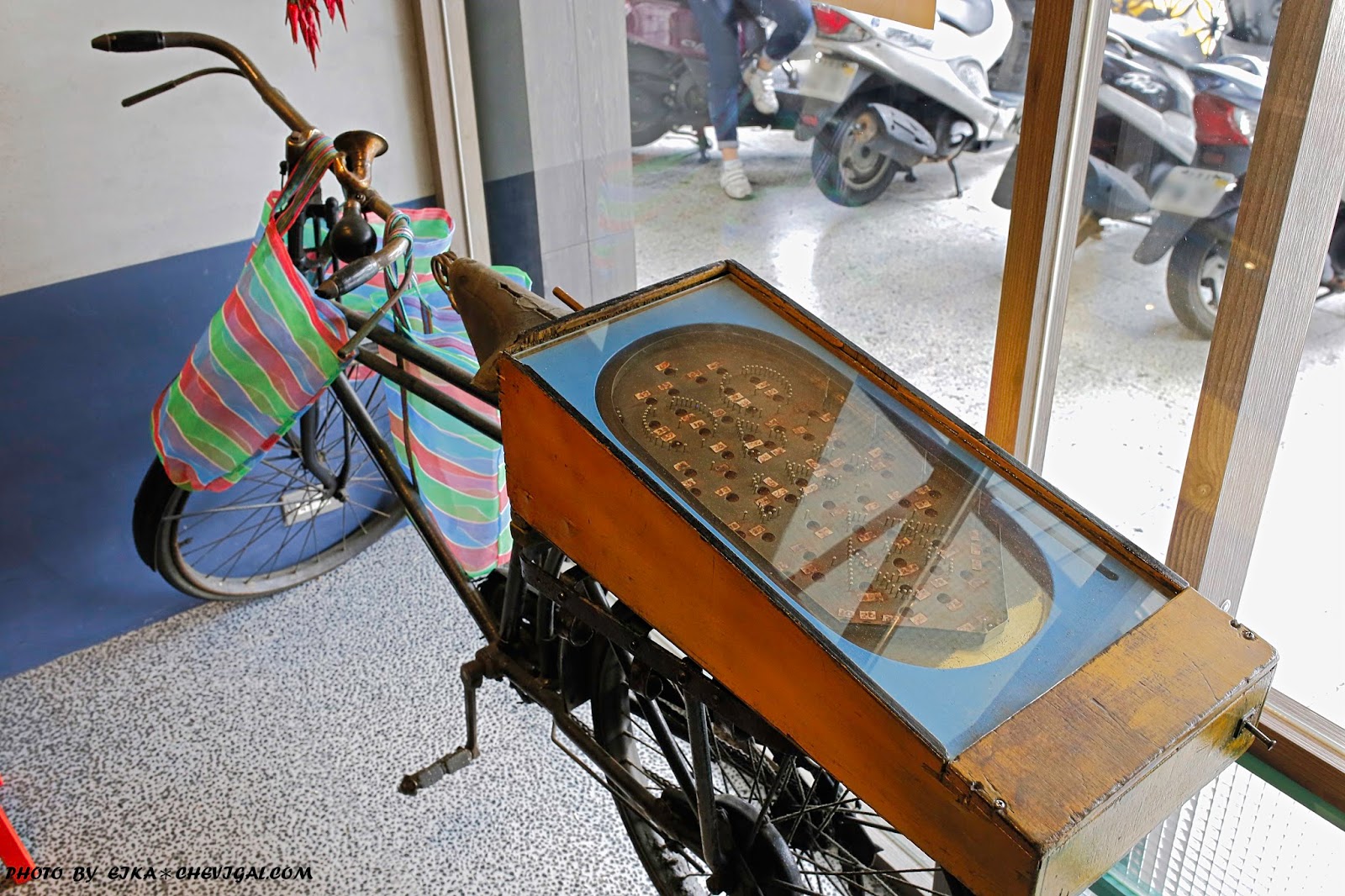 除了能看到磁磚上有著許多逗趣的圖案,門口還停了一輛載著彈珠台的卡打車,而且還有不少客人跑來玩,真的很懷念耶!