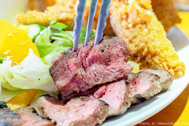 牛肉選用的是澳洲嫩肩牛,不僅份量給得大方,熟度還能選擇五分熟、七分熟或全熟,一般最建議的熟度是七分熟。