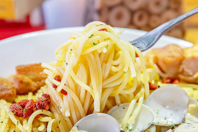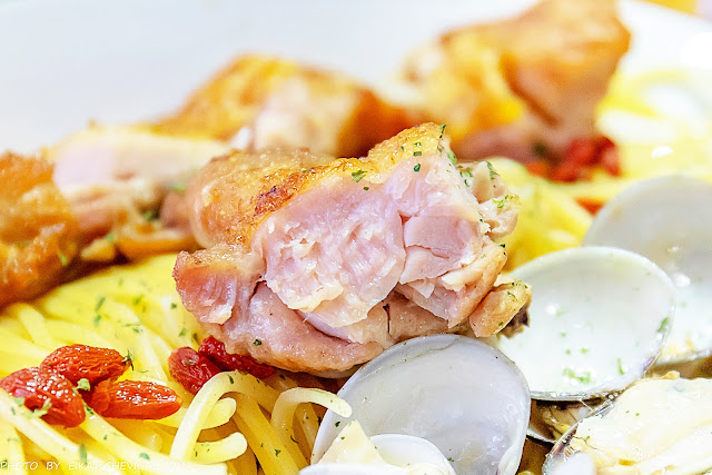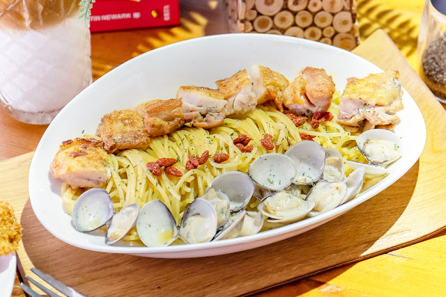 起初看到這道花雕燒酒雞腿蛤蜊義大利麵,真的有點難想像中式的花雕燒酒與義大利麵的組合,沒想到口味意外地合拍!