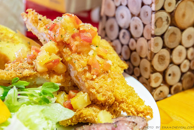 整份義大利麵的雞排份量給得同樣頗有誠意,足足給了八塊雞排,酥炸過後的肉質帶有嚼勁,卻也不失鮮甜軟嫩的口感,厚切的肉質吃起來非常過癮!
