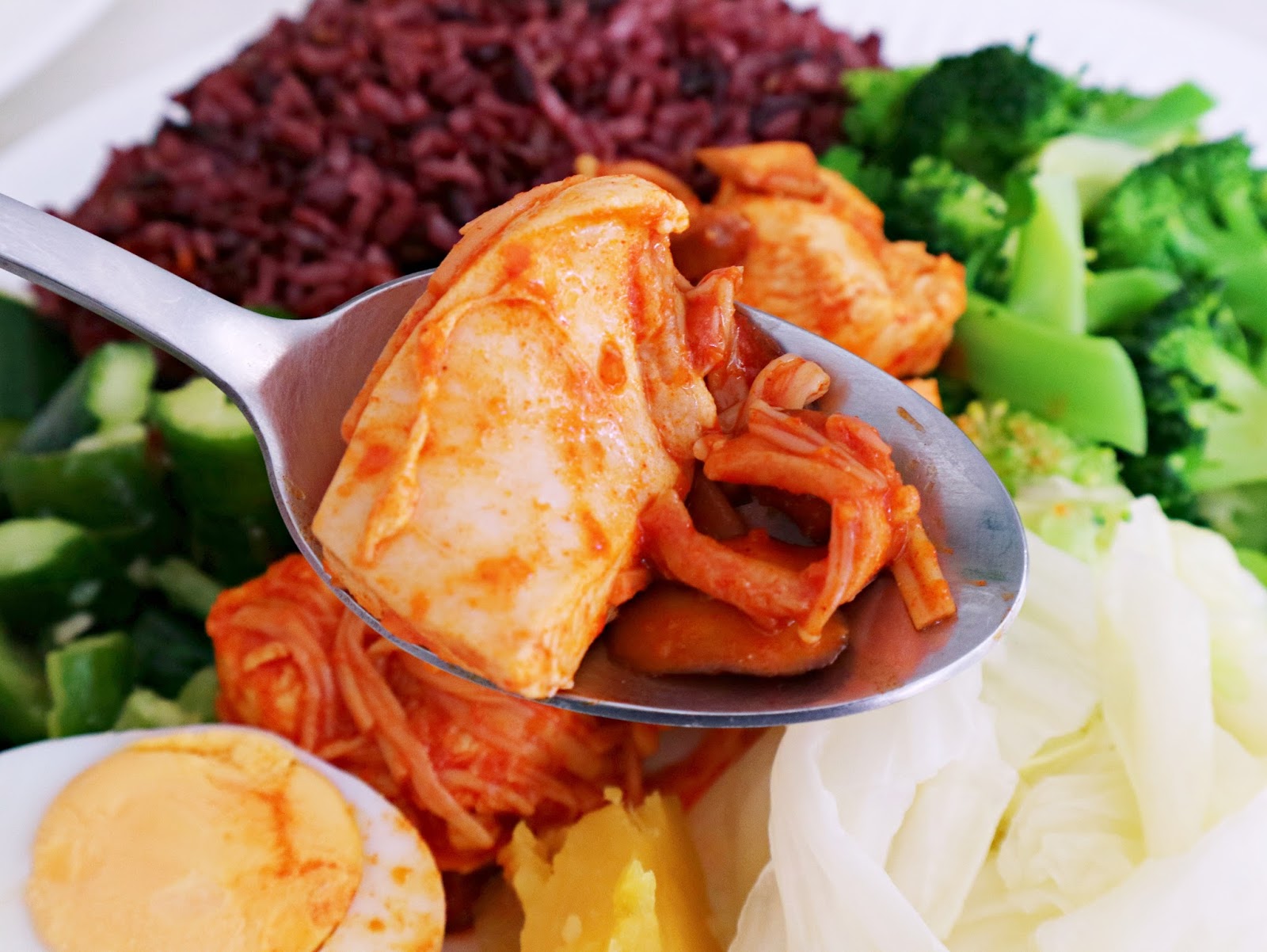 魚兒這天點的是韓式菇菇雞,他們家的份量真的很多啊!柚柚說男生這樣可以吃飽沒問題,魚兒則是飽到一個極限啦!蔬菜的份量也給得很大方,雖然是以水煮的方式去料理,但是調味不會讓人覺得沒味道,也吃得到食材的原味與鮮味!