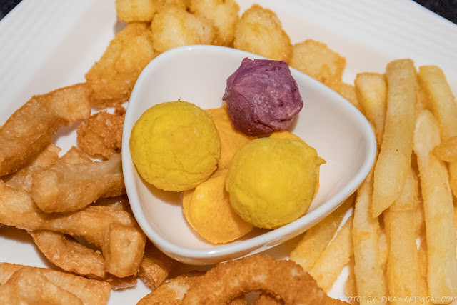 最特別的應該就是這小巧飽滿的黃金球了!目前我們在台中其他夜景餐廳似乎沒有吃過類似的炸物,感覺這就是炸物專賣店才會出現的品項!不管是地瓜或芋頭內餡都香酥好吃!