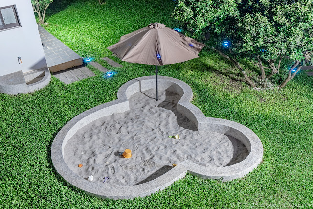 餐廳旁邊還有米奇造型的沙坑可以玩耍,沙質還蠻乾淨的,晚上也有足夠的照明,不論白天或晚上都能帶小孩來這裡放電~