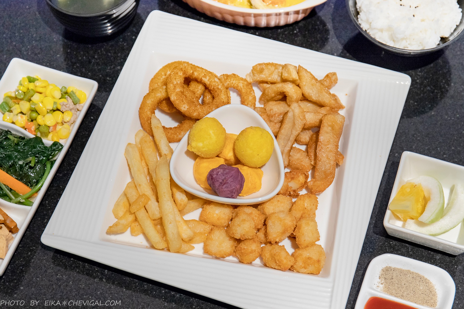大團圓拼盤$220元,含有薯條、甜不辣、洋蔥圈、魷米花與黃金球,一次就能享用多種炸物,而且食材的品質吃得出來有經過挑選,口感與味道還不錯,很適合多人聚餐一起分享~