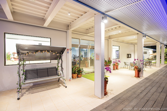 更多人喜歡在二樓陽台用餐,不僅可以享受夏日涼風徐徐,景致也很不錯。但是這邊剛好也距離步道較近,有時會遇到甲蟲或其他昆蟲,介意的朋友可先在室內用餐完後再來慢慢賞景。