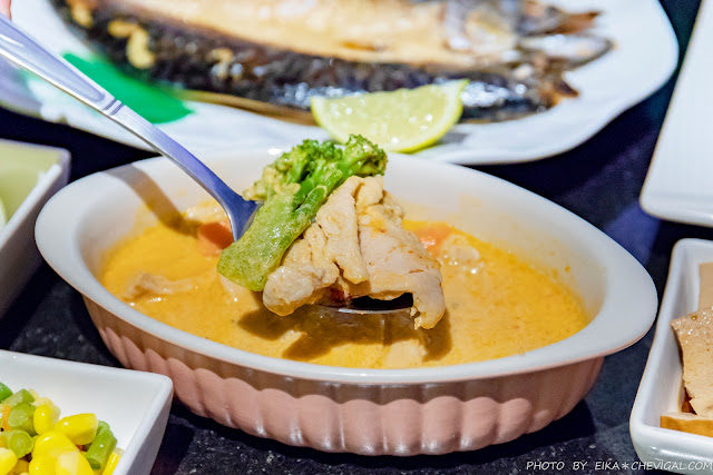 泰式椰香雞一上桌就香氣四溢,讓還沒吃晚餐的我們都忍不住想流口水了~南洋的香料搭配上清爽的椰香,濃郁的口味富有層次,十分下飯!