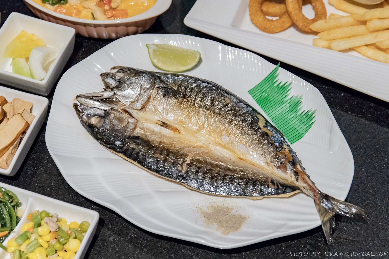 原來萬里嵐的香煎鯖魚相當有誠意,是使用一整尾鯖魚料理而成!一個人就能獨享一整條魚,對男生來說份量吃得飽,像魚編食量小的女生大概吃個半條就飽了~