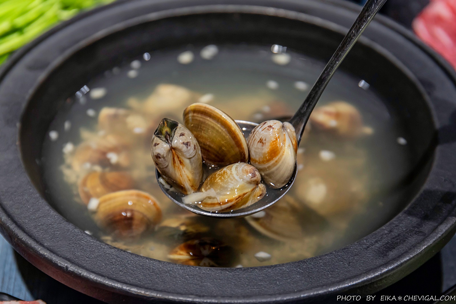 以我們目前吃過的蛤蜊鍋來說,敝姓鍋讓我們最喜歡的就是溫順的蒜香,雖然蒜頭看似加得不少,但是竟然意外地絲毫不會刺激嗆口,順勢帶出蛤蜊的鮮甜,吃完也不會滿口都是崩潰的大蒜味XD