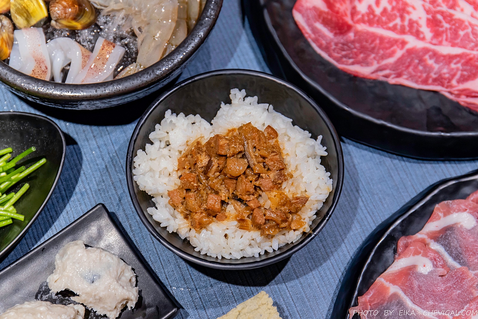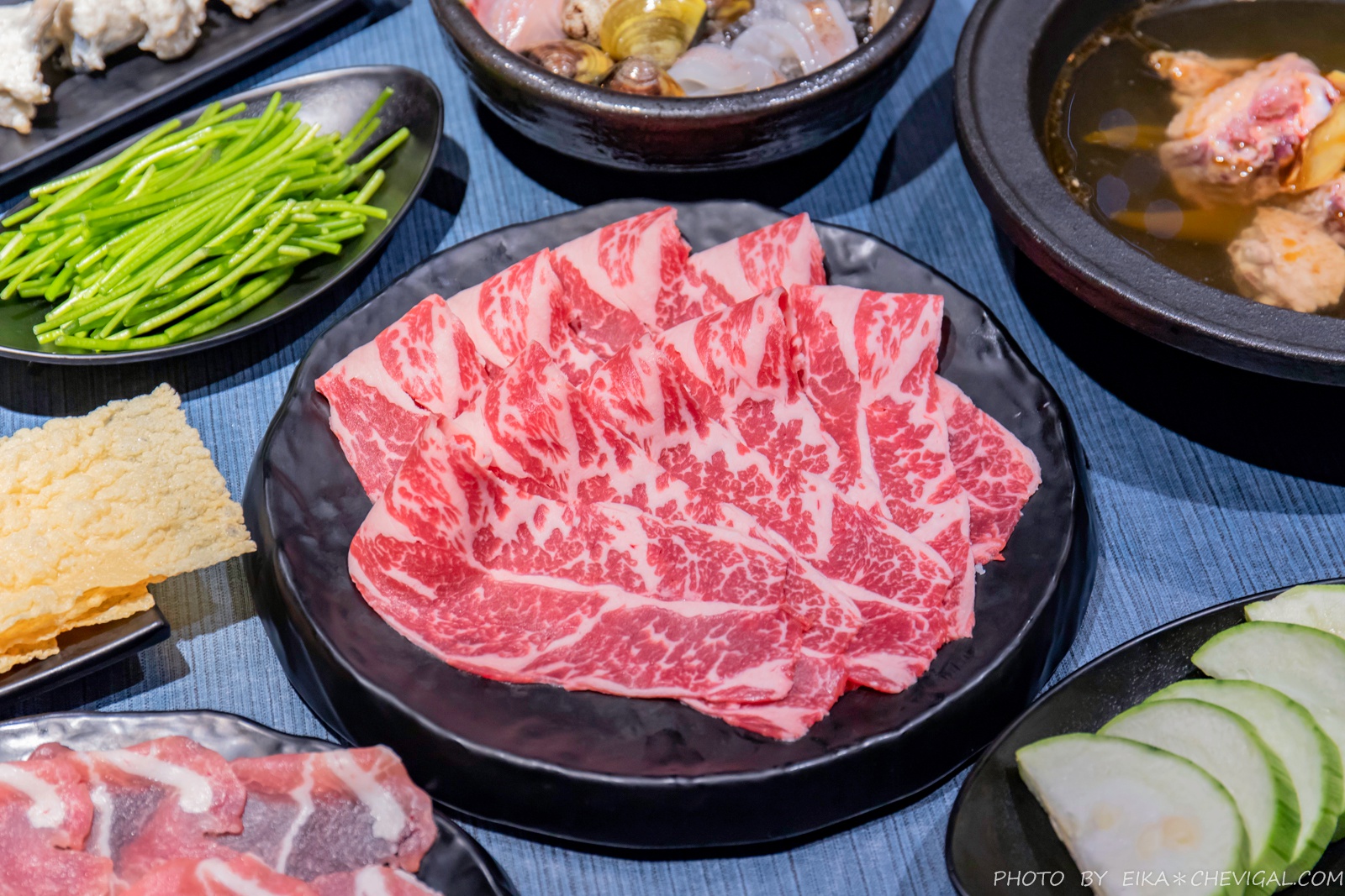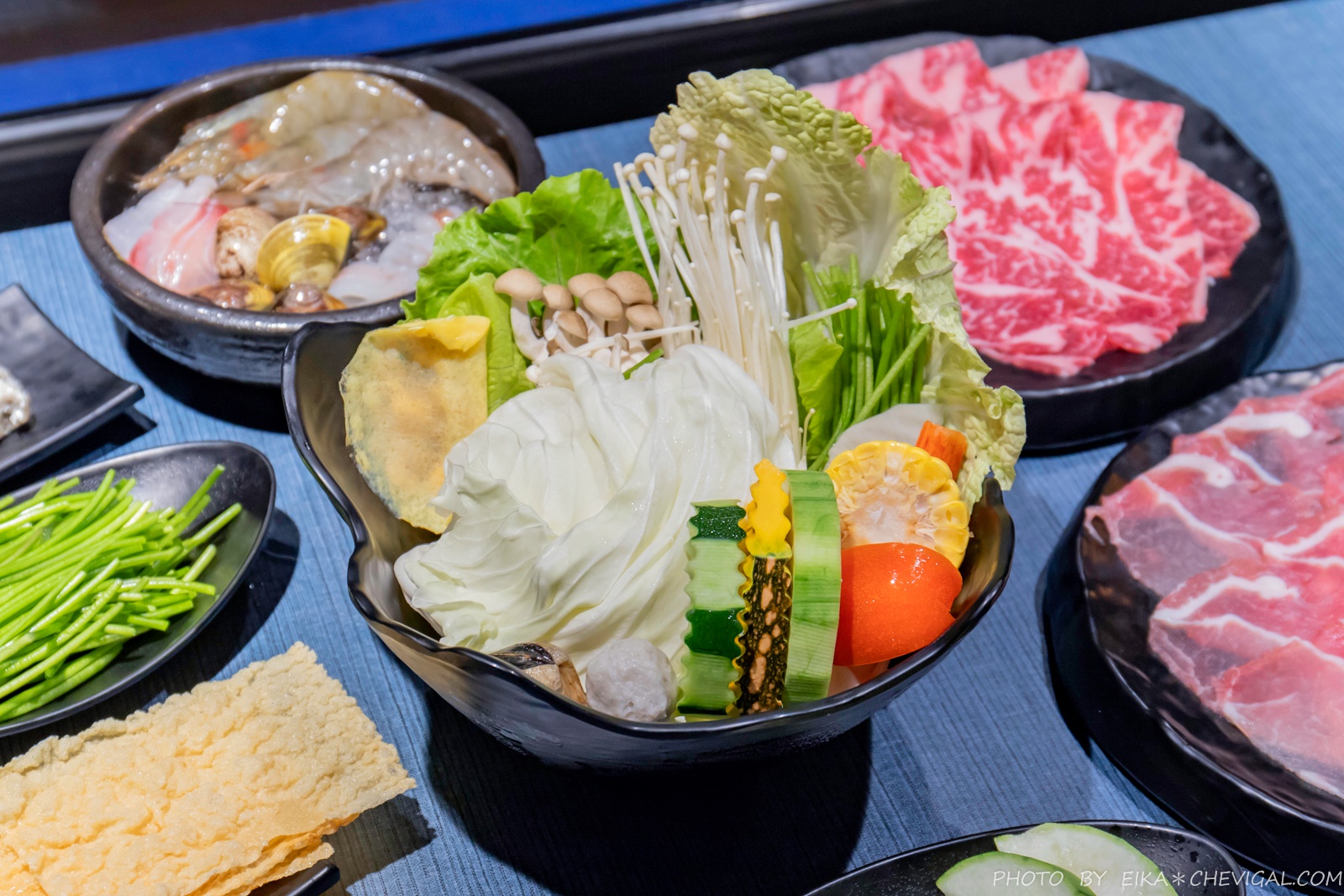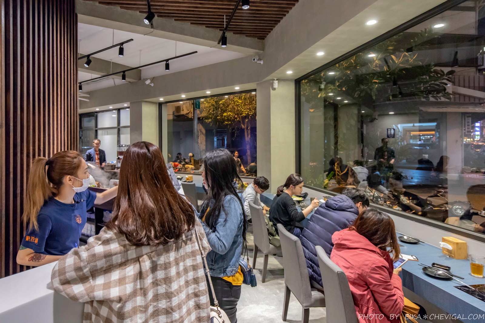店內以灰藍色為主要色系,文青中帶有質感,同時也不失活潑愜意。更讓人喜歡的是大面窗面的設計,一樓與二樓皆有街景,就像把城市咖啡廳的氛圍搬來火鍋店了!