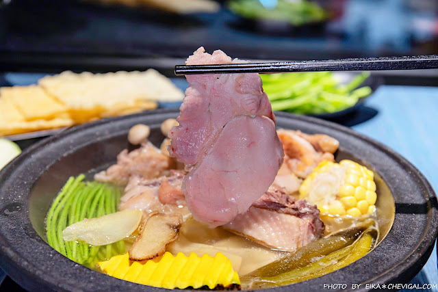 獨家爆爆蛤蜊鍋$288元,以蒜頭拌炒約25-30顆蛤蜊,再倒入大骨與多種蔬果慢火熬製的湯頭,用料實在大方,難怪是店內的人氣湯底口味!