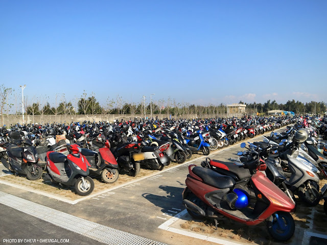 機車格非常多,下午逛完要離開時還有一半以上的空位,不過停好車後真的要記一下停車格的編號,否則回來找車真的會找很久XD