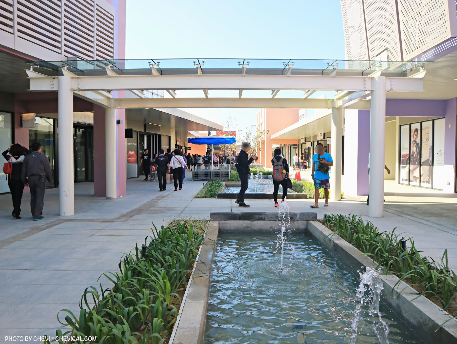 三井OUTLET的走道寬敞好走,中間還有各式造景與休息區域。