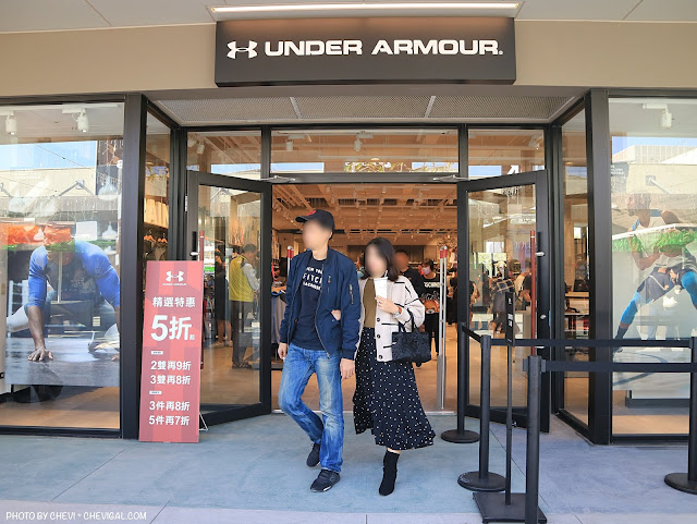 另外一邊逛到的是運動用品區,各家在試營運期間幾乎都有祭出不同的優惠,像是Under Armour就是精選特惠5折起,鞋款與服飾依不同的購買數量還有優惠。