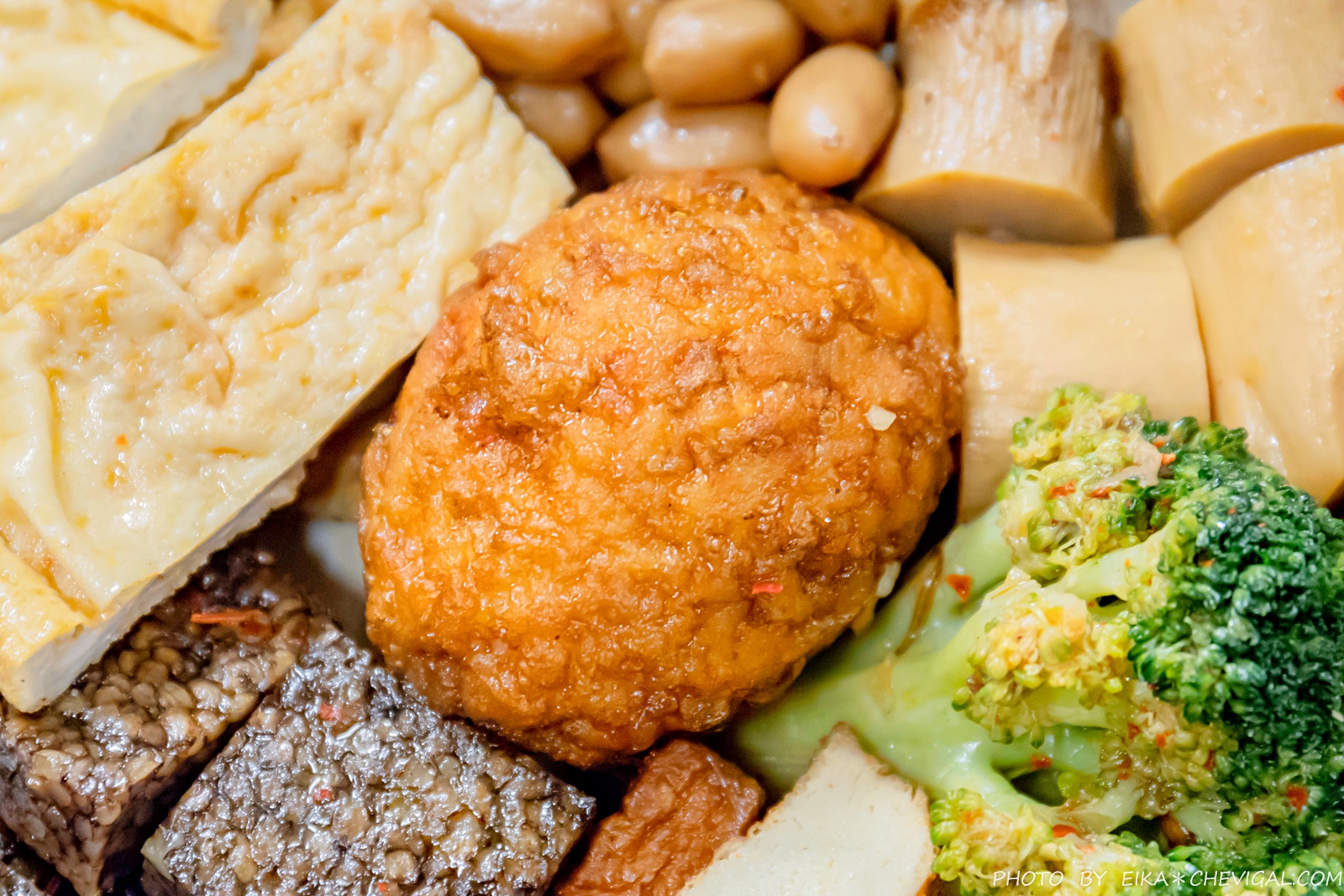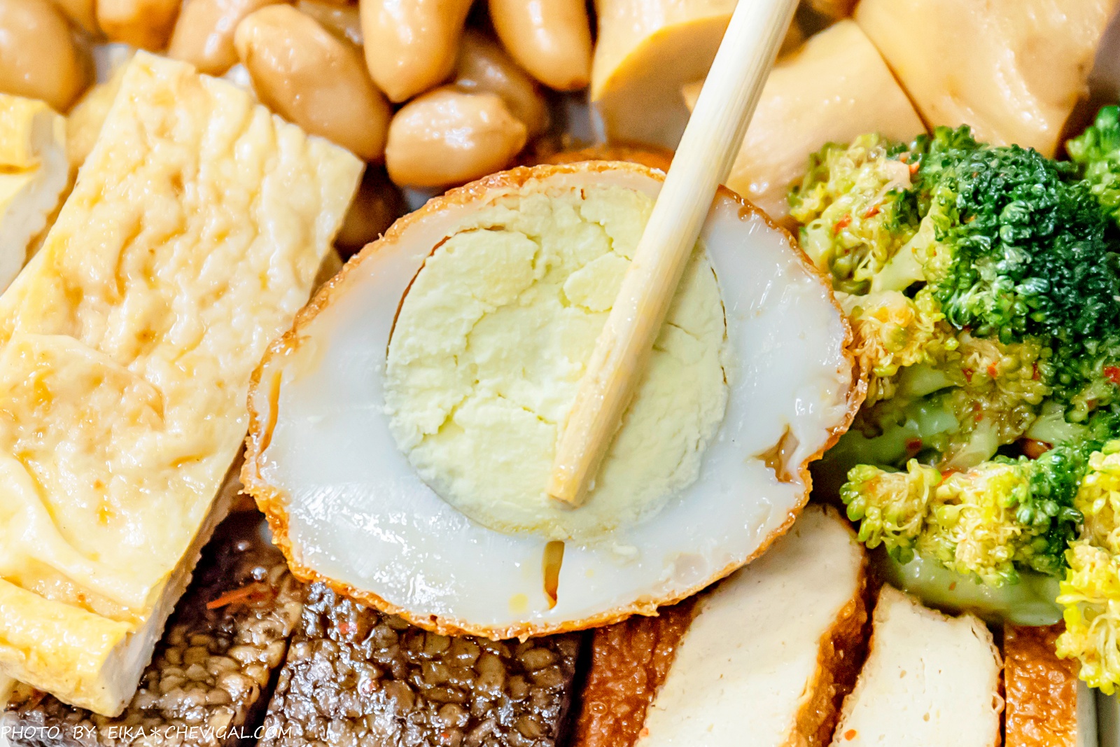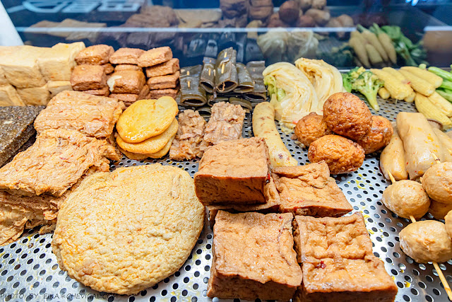 我們先點了份最基本款的品項:豆干、花椰菜、杏鮑菇、土豆、甜不辣、米血與滷炸蛋,味道都很入味。