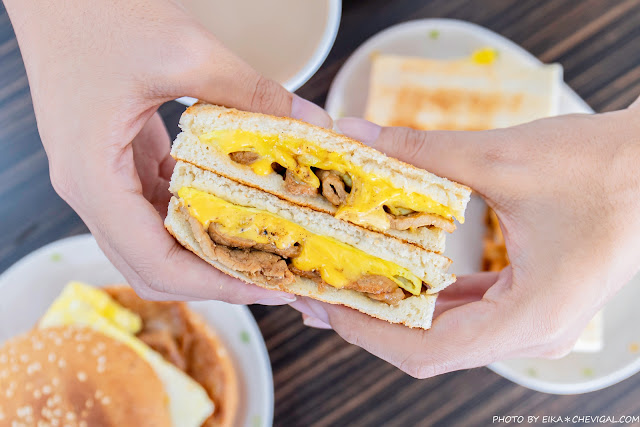 裡面加入的是單純的起司,所以不會像乳酪絲一樣牽絲,只會有些微的流動感~不過起司的香醇倒是恰如其分,讓吐司的麵香與里肌肉的鹹香更加飽滿有層次,再加$10元還能變成雙倍起司唷!