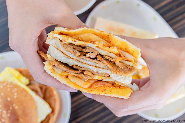 招牌肉蛋吐司+起司$50元,裡面選用的是鮮嫩的里肌肉,搭配上滑嫩的歐姆蛋,整體吃起來略帶微微的水分,口感不顯乾澀;重點是美乃茲並不會加得太多,潤口卻不會蓋過食材本身的原味。