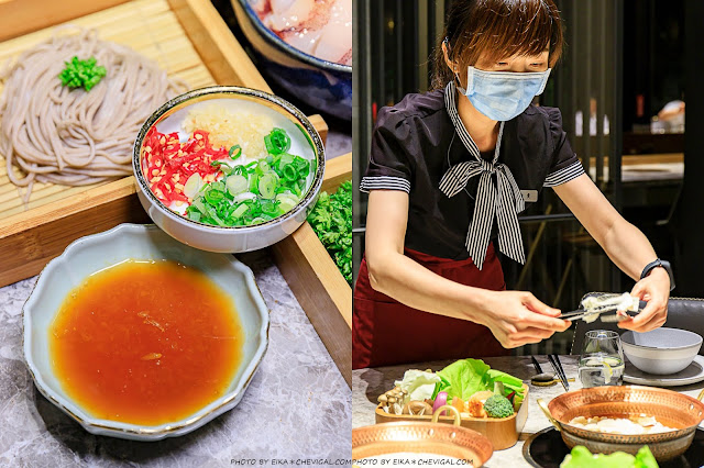 對了,每鍋都會提供微帶酸甜的日式桔醬與基本的調味料,而且只要服務人員有空的時候,都會幫忙下料、烹煮與擺盤,肉品也會涮至恰到好處的熟度、海鮮更是會當場剝殼、剪切,讓客人在用餐過程都不需動手處理食材,完全是懶人最愛啊XD
