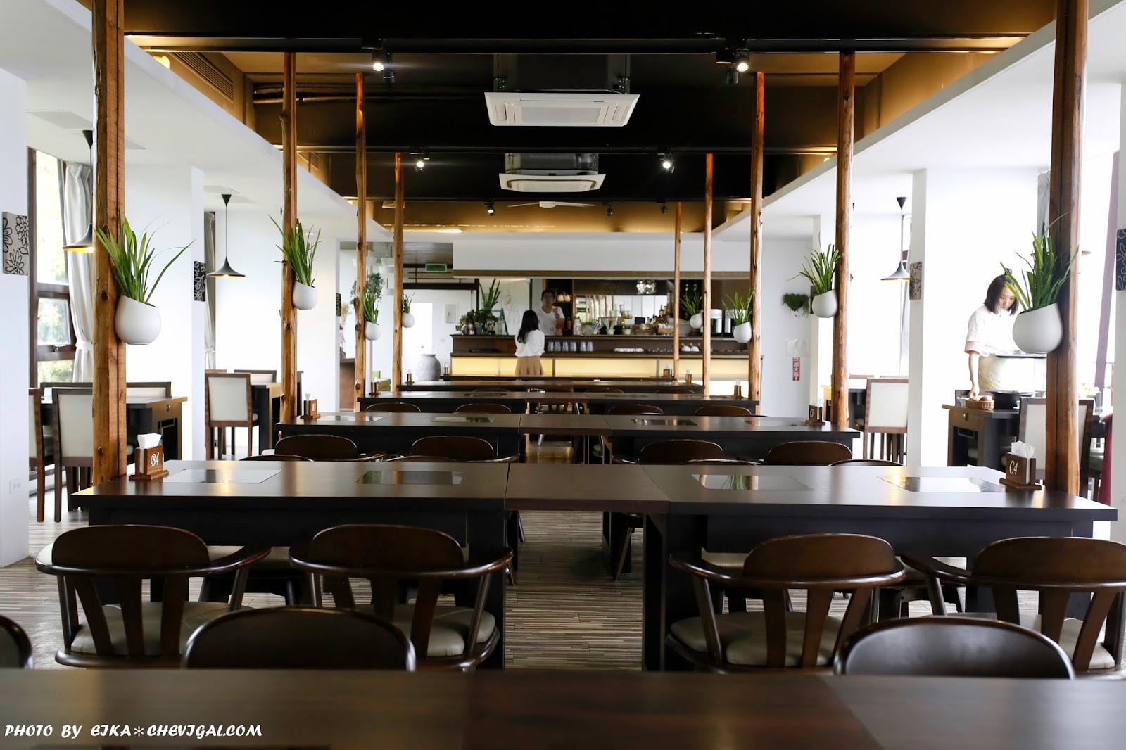 漫步走入餐廳,寬敞的空間有著自然光的採光投射,搭配上內部木質的擺設與翠綠植栽,引領我們走進清新森林的豐盛饗宴。