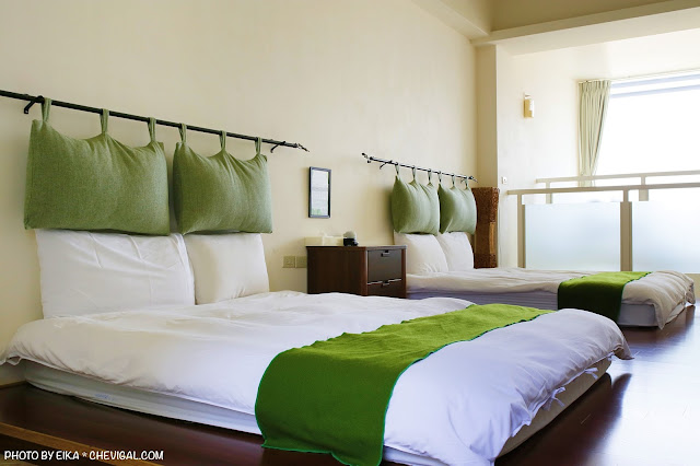 日出晨曦四人房(平日3600元,假日4800元),森林色系的配色,讓人有著彷彿回到家的溫暖,同時流露出清新舒適的氛圍。